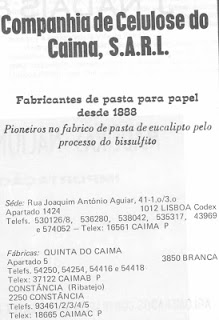 No ano de 1888 é fundada a “The Caima Timber Estate and Wood Pulp Company Ldª”, cuja actividade principal seria ao longo de mais de um século a produção de pasta para o fabrico de papel.