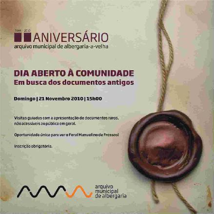 O Arquivo Municipal de Albergaria-a-Velha comemorou o seu segundo aniversário com um dia aberto à comunidade.O tema da visita foi "Em Busca dos Documentos Antigos". Os visitantes puderam apreciar alguns documentos históricos do Arquivo, que não costumam estar acessíveis ao público em geral, bem como o Foral Manuelino de Frossos, datado de 1514, e que, dado a sua fragilidade, nunca sai do cofre onde é cuidadosamente guardado.